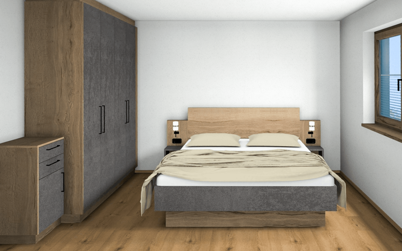 - 2 Schlafzimmer mit Bettwäsche